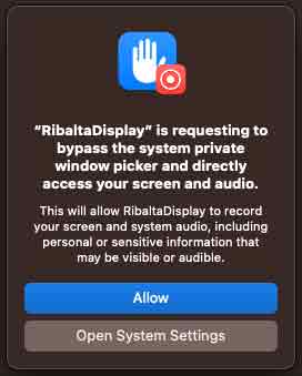 Mac OS users will see the following message box appear when launching the Ribalta Display for the first time.